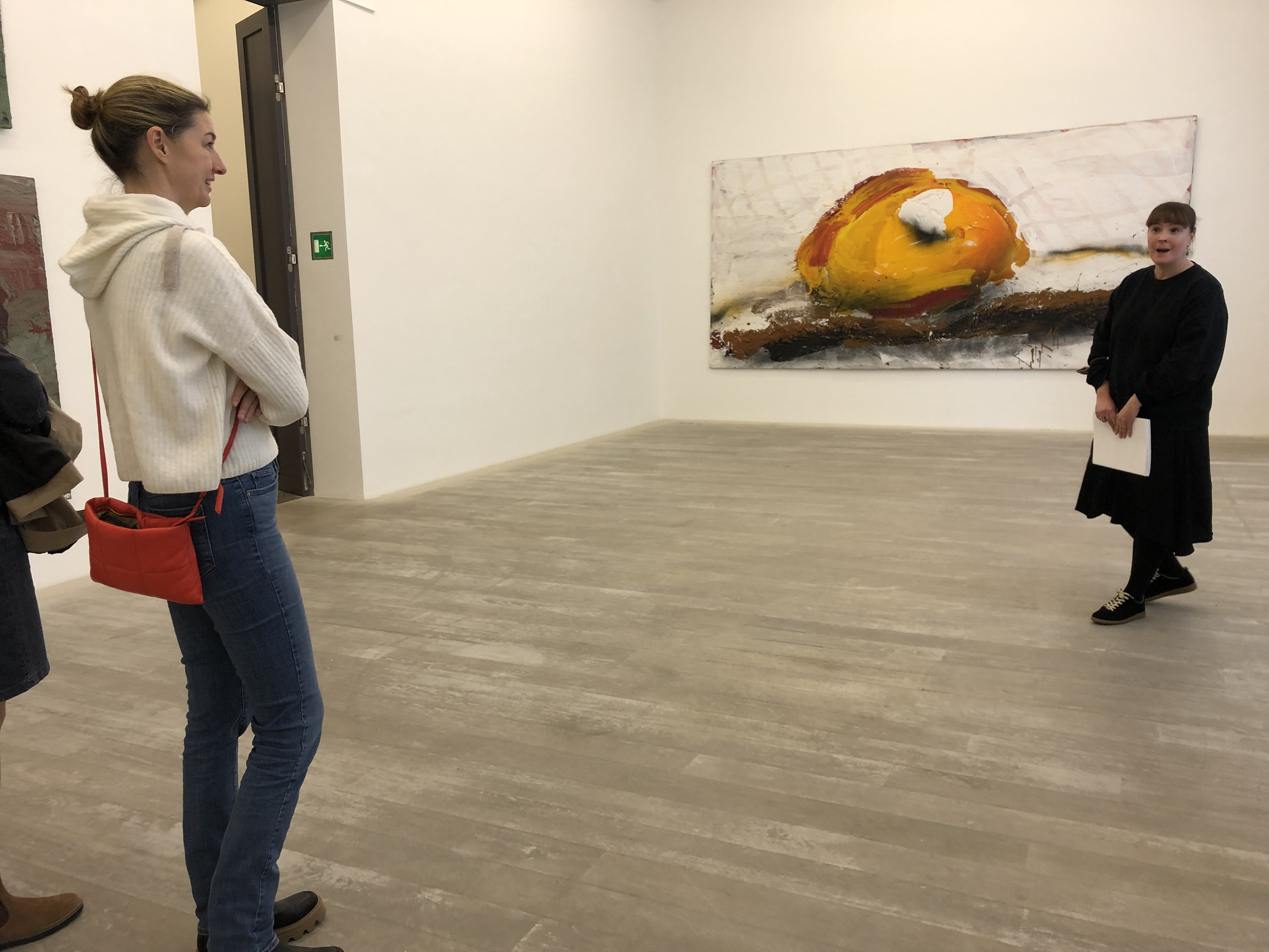 Kurtorin Frau Dr. Sondermann führte interessierte FreundeInnen der Kunstakademie durch die Ausstellung des früheren Akademie Professors Dieter Krieg. Er wäre am 21. Mai 2022 85 Jahre alt geworden. “Dieter Krieg gehört zu den wichtigsten Malern seiner Generation und wird mit seiner Malerei zu den Vertretern der Neuen Figuration gezählt”, schreibt Karl-Heinz Petzinka im Vorwort des Katalogs zur Ausstellung. Die Ausstellung wird noch bis zum 12. Februar 2023 in der Akademie Galerie - Die neue Sammlung am Burgplatz 1 in Düsseldorf gezeigt.